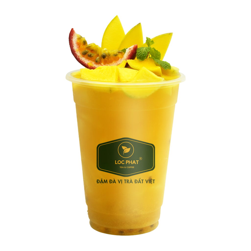 - Định lượng ly 700ml: 200ml nước cốt trà xanh (423đ) + 15ml nước cốt chanh dây (1.5k) + 30ml nước đường (636đ) + 70ml sốt xoài (3.4k) + 110ml xoài ngâm: 40ml nước ngâm + 70g thịt xoài (5k) + 1vá thạch nổ củ năng (5k) + ly, muỗng, ống hút (1.5k) = 17.5k